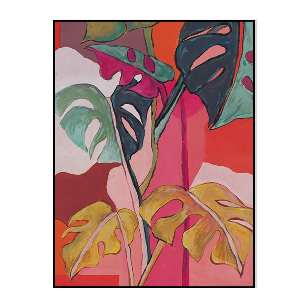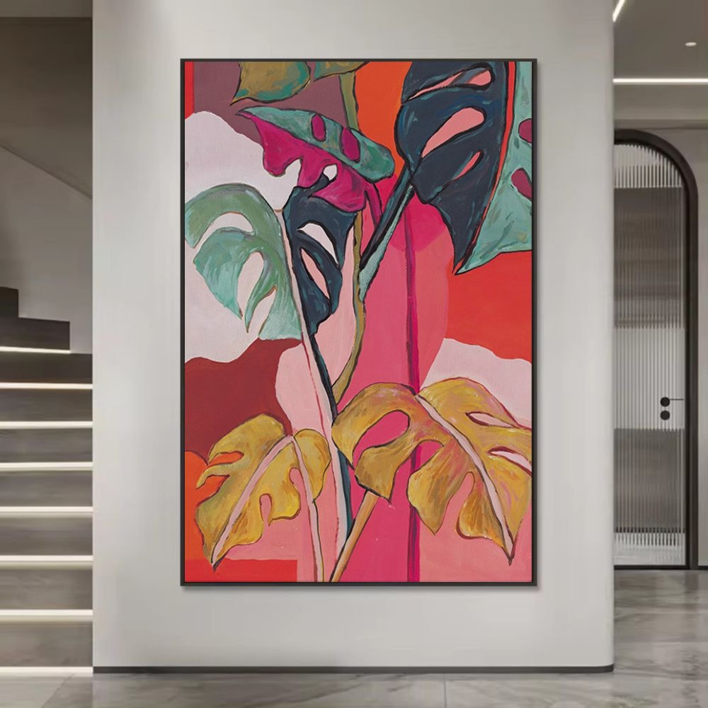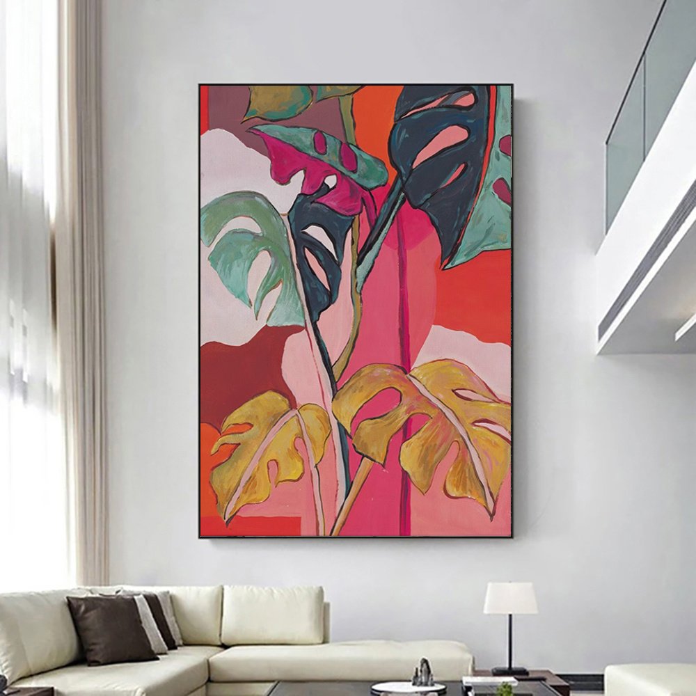 Handmade Oil Painting, Colorful Banana Leaves Flowers