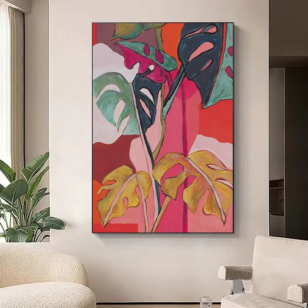 Handmade Oil Painting Canvas Wall Art Decoration Modern Retro Colorful Banana Leaves Flowers Plants For Home Living Room Decor Rolled Frameless Unstretched Painting