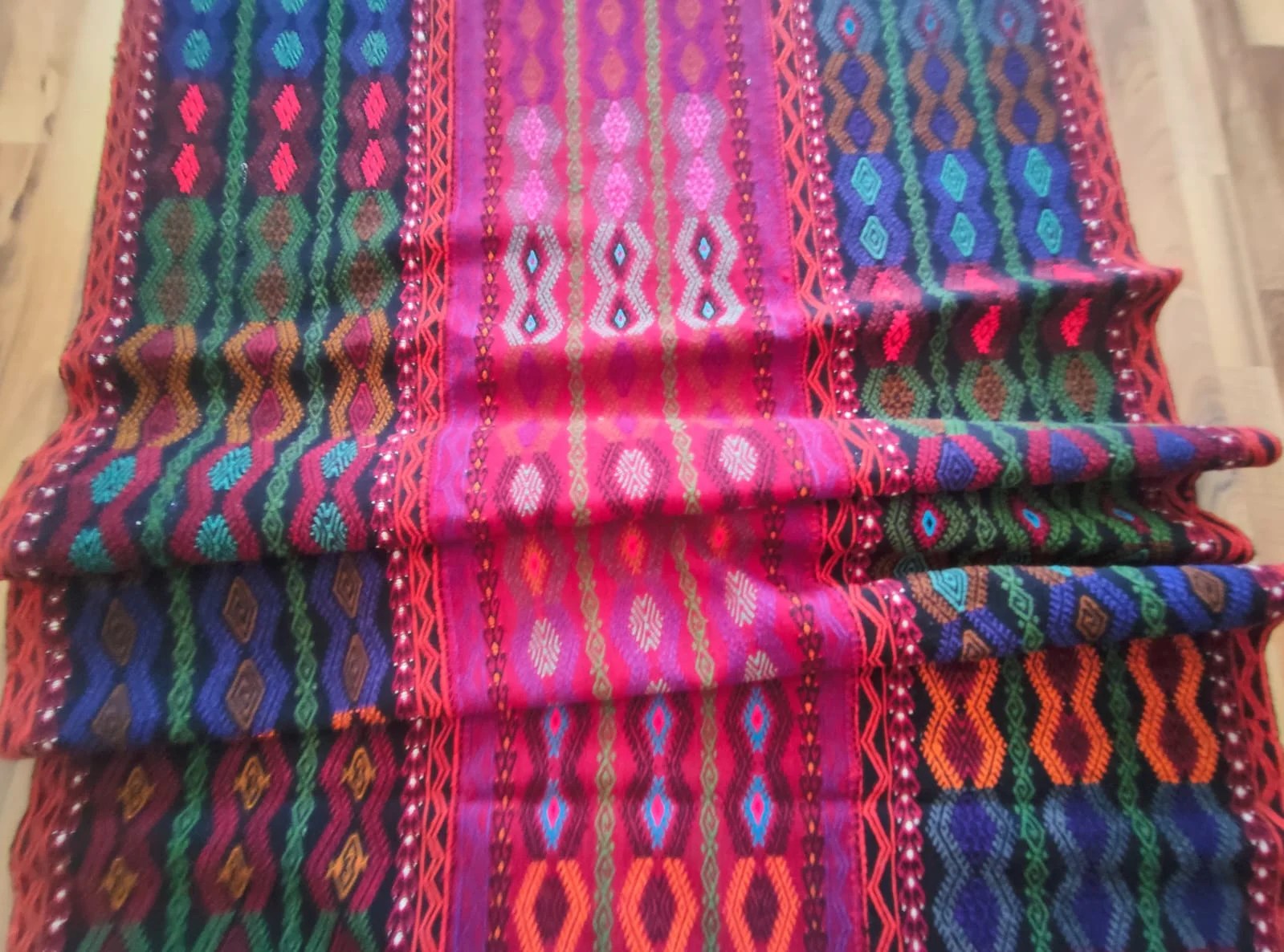 This product is made of wool threads, hand-spun yarns, on traditional hand-looms as a handwoven art.