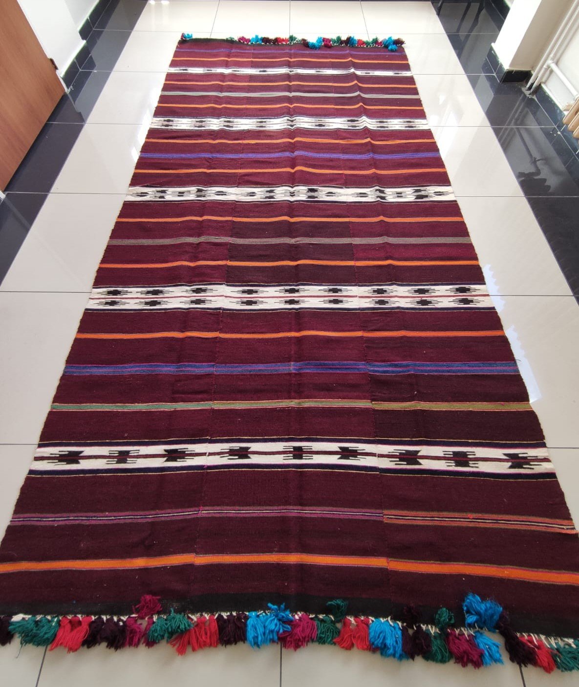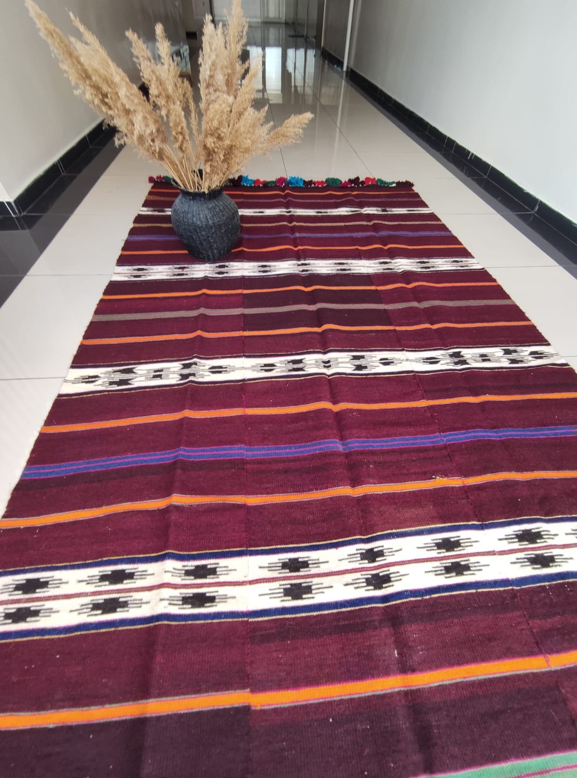 A traditional hand-woven and handicraft “Kilim” product. It is a hand-woven product of Anatolian and Turkish art that people have produced locally and traditionally for their own needs.