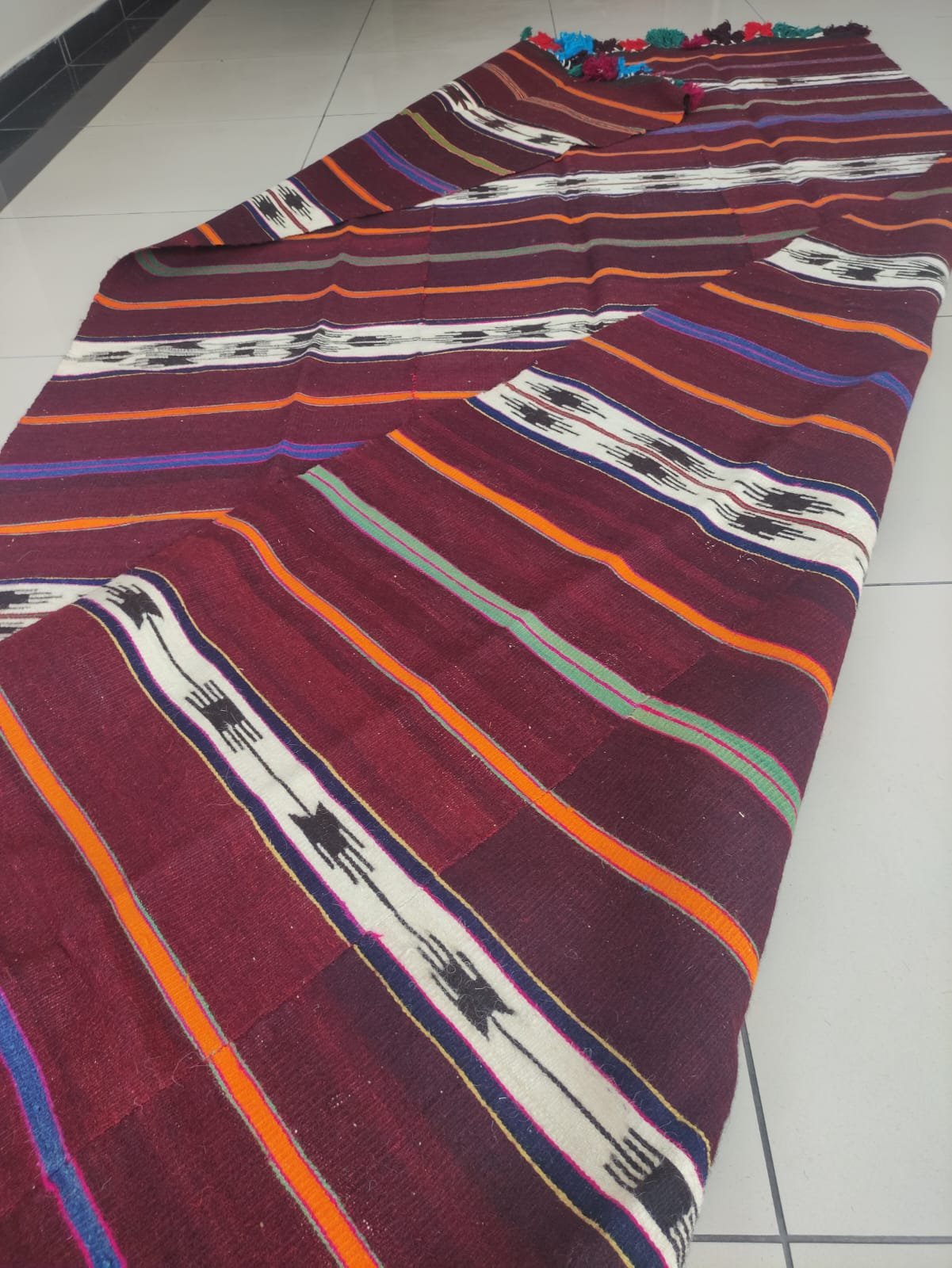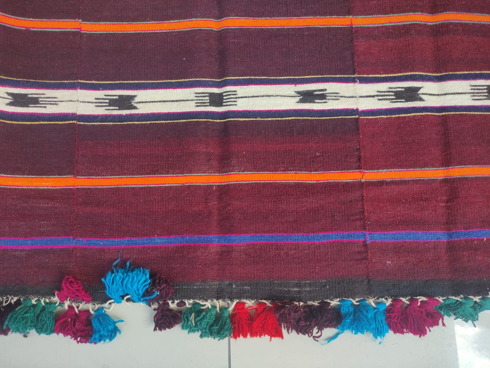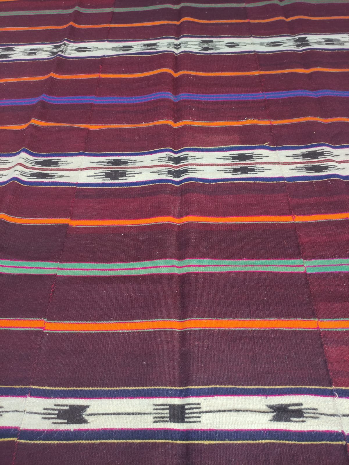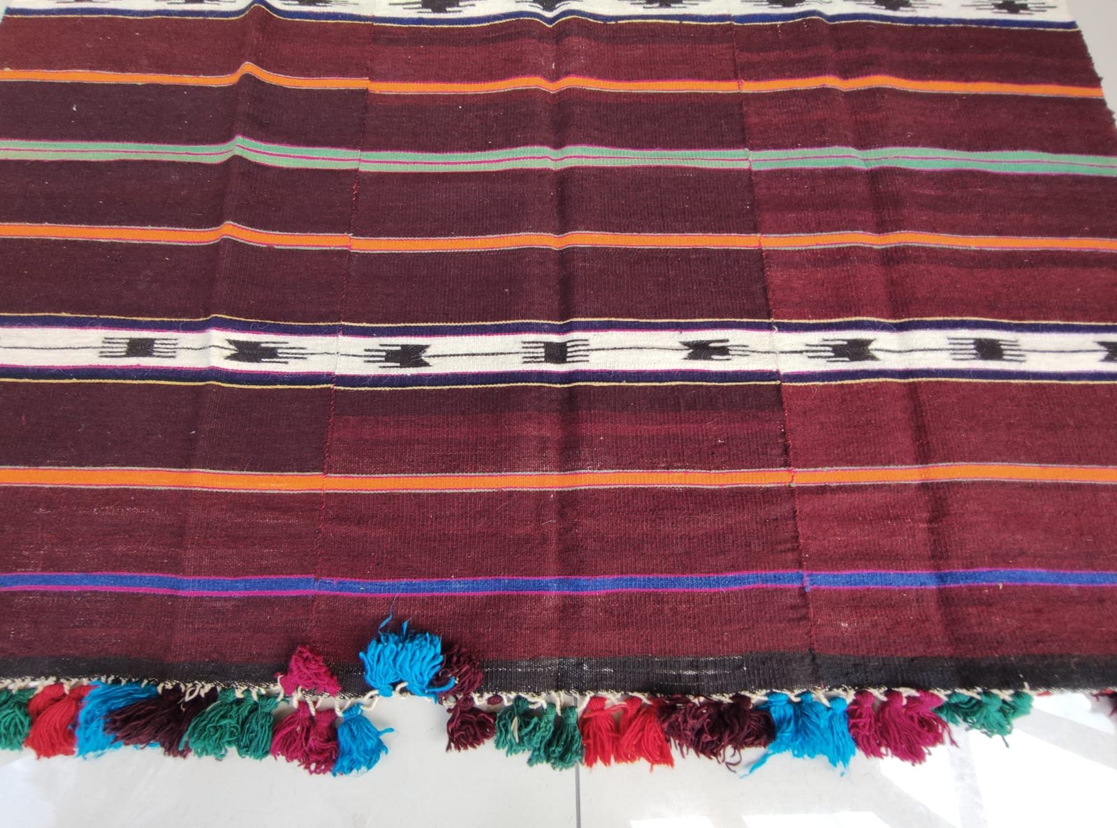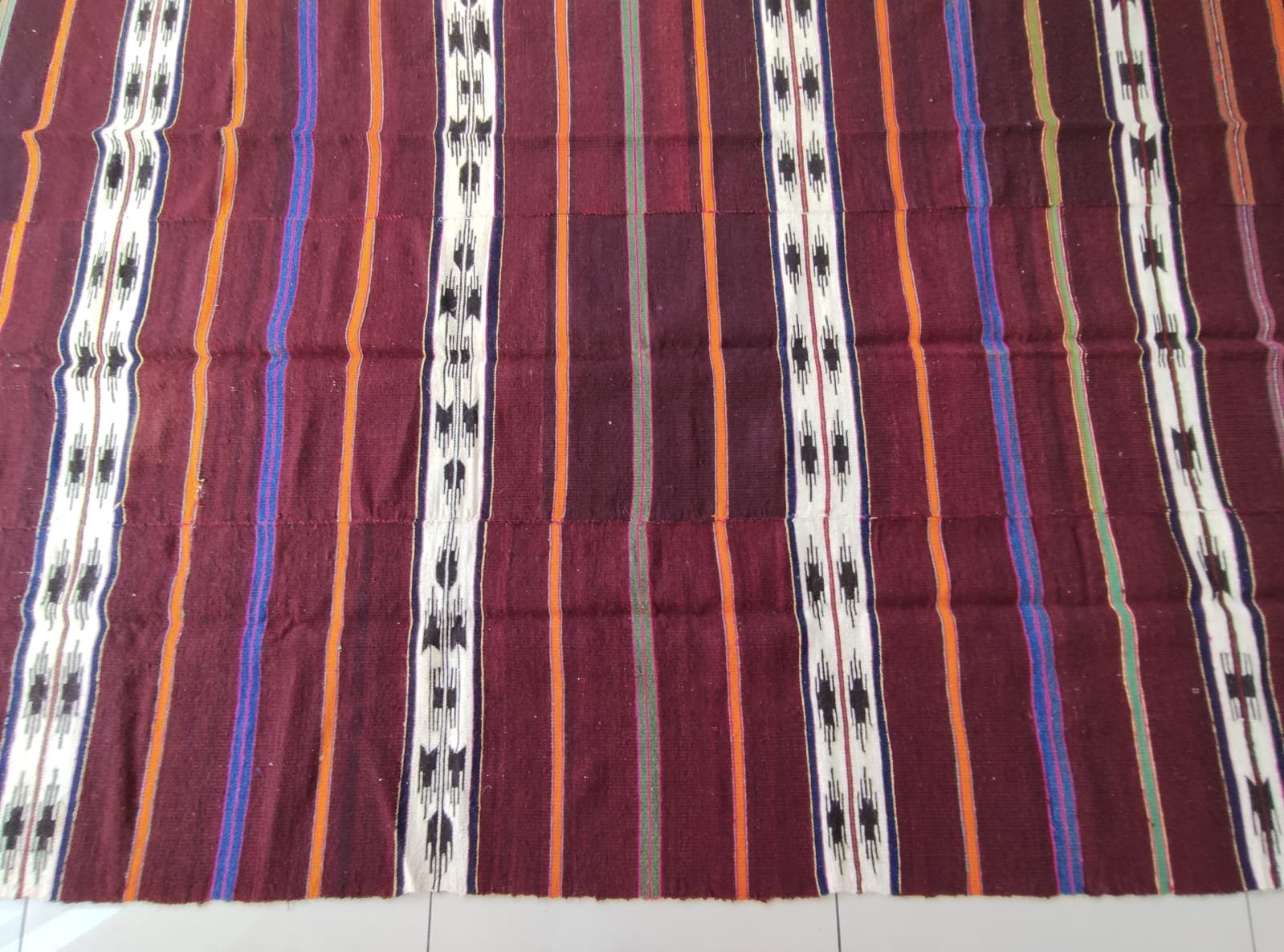 It was created by combining three kilims of the same nature.