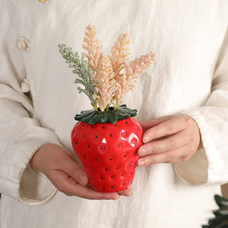 Color: small vase red strawberry, small vase pink strawberry, large vase red strawberry, large vase pink strawberry